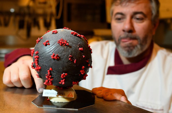Thợ làm bánh ngọt Jean-François Pré (Pháp) đã làm và bán ra những quả trứng Phục sinh bằng chocolate với hình thù giống virus corona từ đầu tháng 3. Trứng chocolate có màu đen bên ngoài điểm thêm những chấm nhỏ từ quả hạnh đào đỏ.